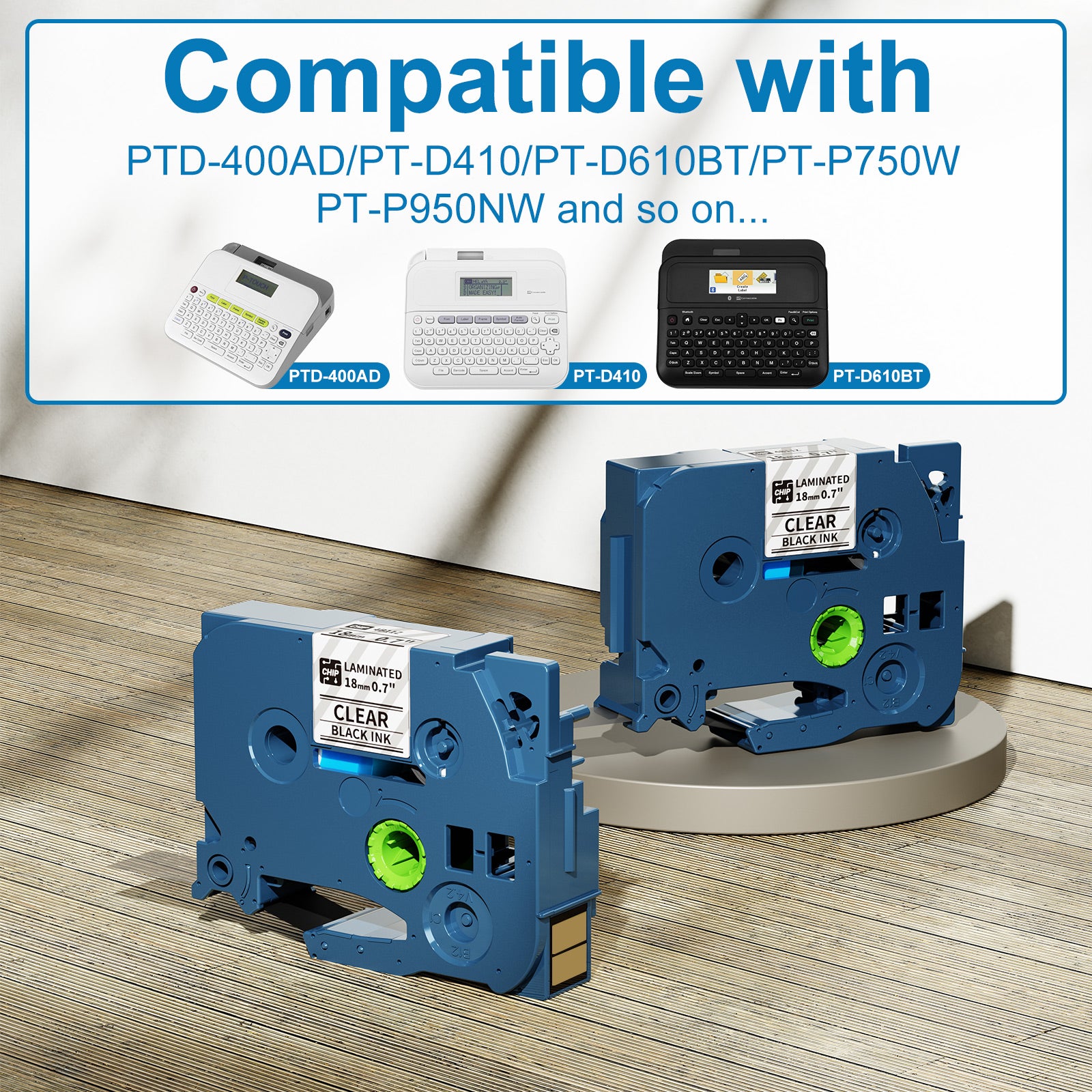 Label Tape Compatible with Brother P-Touch, 0.7 inch Label Maker Machine Tape, PT-D400 PTD400AD PT-D410 PT-D600 PT-P750W Tape, 18mm Laminated Label Refills, Black on Clear Labeiling Tape